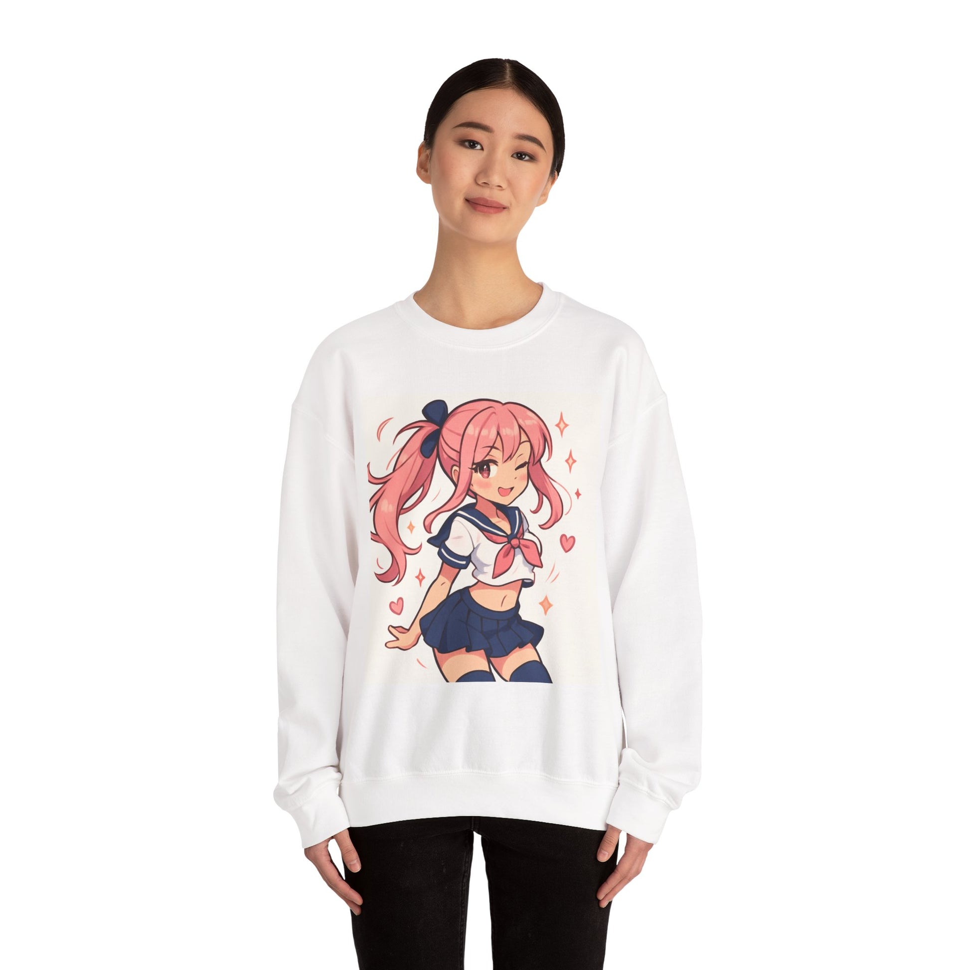 Anime Sailor Girl Sweatshirt – Cute Pink Kawaii Schoolgirl Crewneck